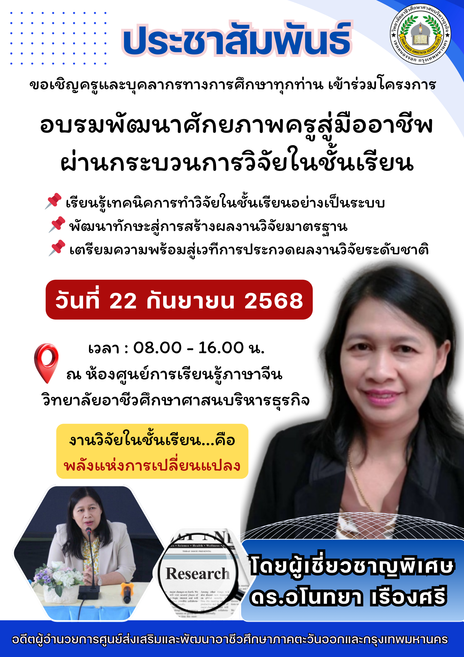 ประชาสัมพันธ์การอบรมพัฒนาศักยภาพครูสู่มืออาชีพผ่านกระบวนการวิจัยในชั้นเรียน