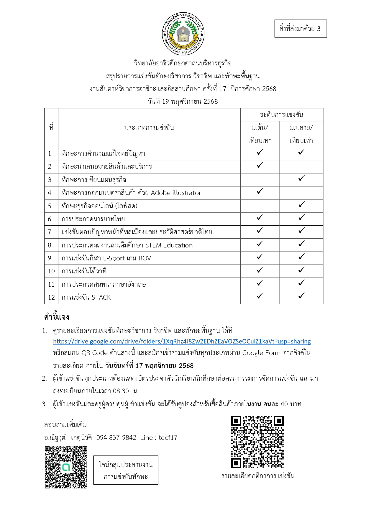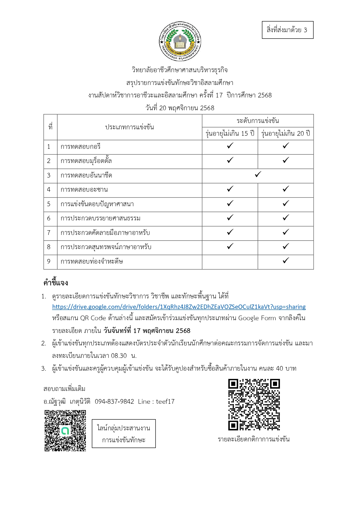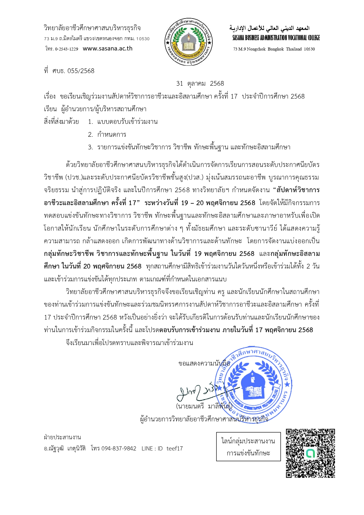 ประชาสัมพันธ์ขอเชิญร่วมงาน สัปดาห์วิชาการอาชีวะและอิสลามศึกษา ครั้งที่ 17 ประจำปีการศึกษา 2568