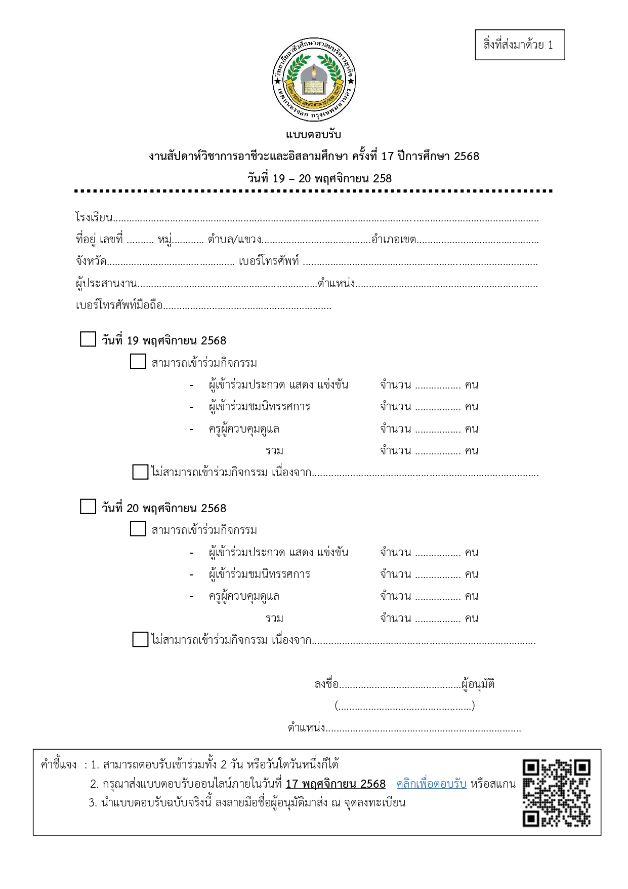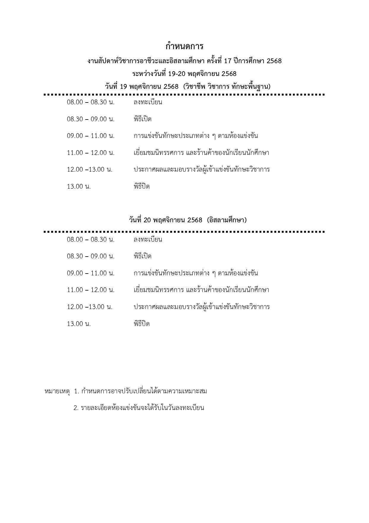 ขอเชิญร่วมงาน สัปดาห์วิชาการอาชีวะและอิสลามศึกษา ครั้งที่ 17 ประจำปีการศึกษา 2568 วันที่ 19-20 พฤศจิกายน 2568