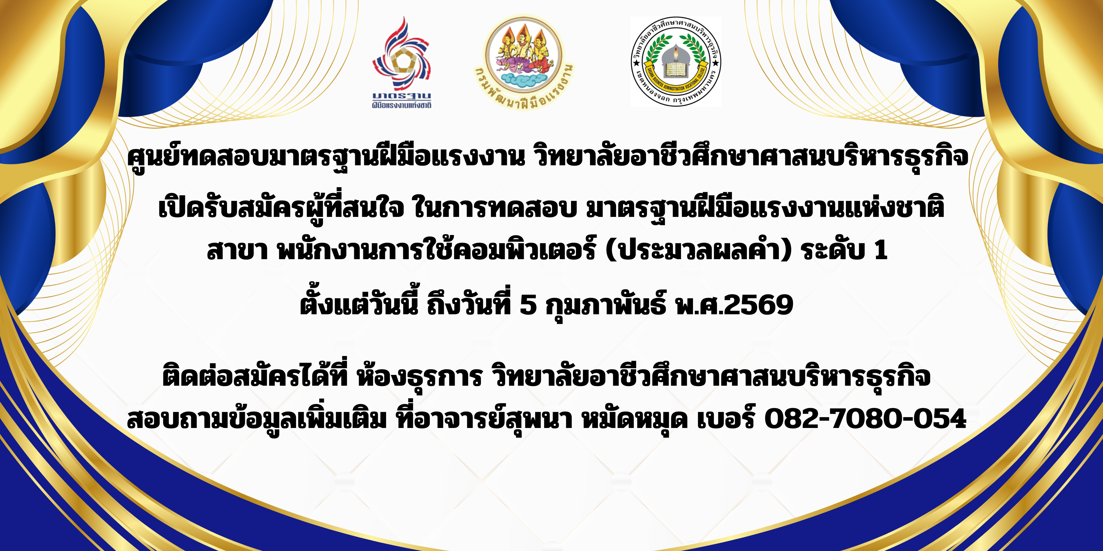 รับสมัครผู้เข้าร่วมการทดสอบมาตราฐานฝีมือแรงงานสาขา การใช้คอมพิวเตอร์(ประมวลผลคำ)