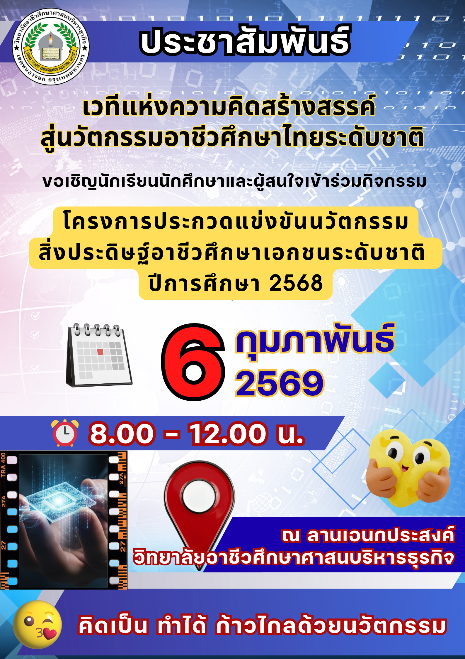 ประชามสัมพันธ์ โครงการประกวดแข่งขันนวัตกรรมสิ่งประดิษฐ์อาชีวศึกษาระดับชาติปีการศึกษา 2568