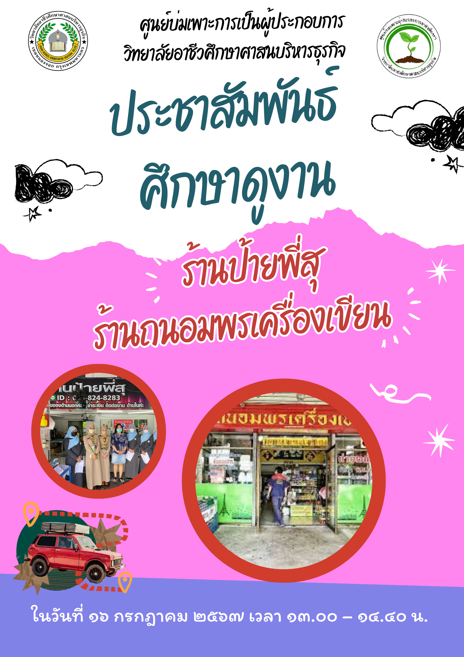 ประชาสัมพันธ์ศึกษาดูงานศูนย์บ่มเพาะ ปี 67